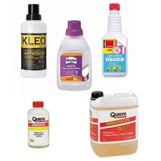 Разведите состав с водой, согласно инструкции и нанесите на обои, данное средство быстро проникает через бумагу и действует только на клей, обои потом отходят легко — пластами.