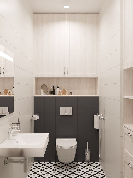 Несмотря на небольшое помещение, можно продумать конструкцию так, что будет и функционально и красиво.